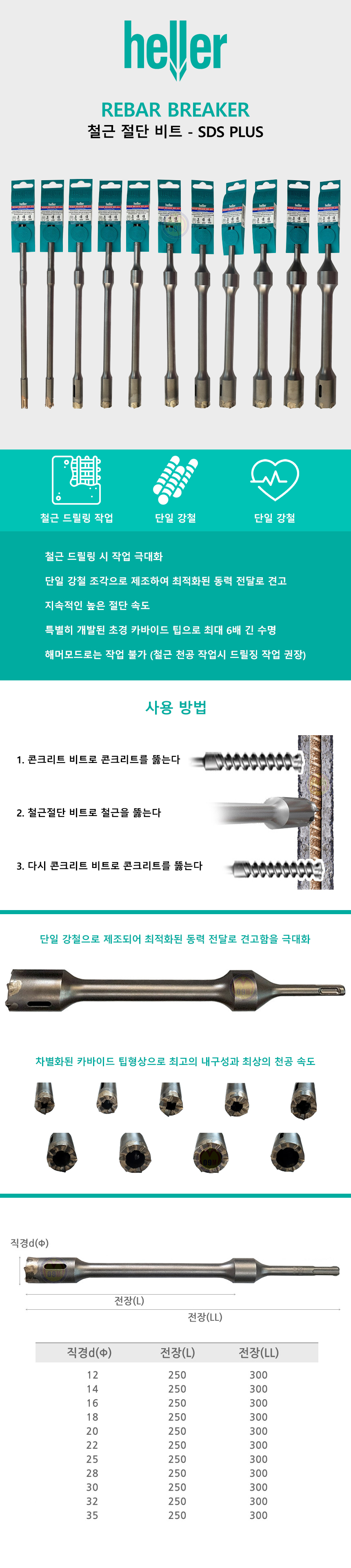 헬러 철근절단비트 12-35mm SDS타입 철근비트 콘크리트비트
