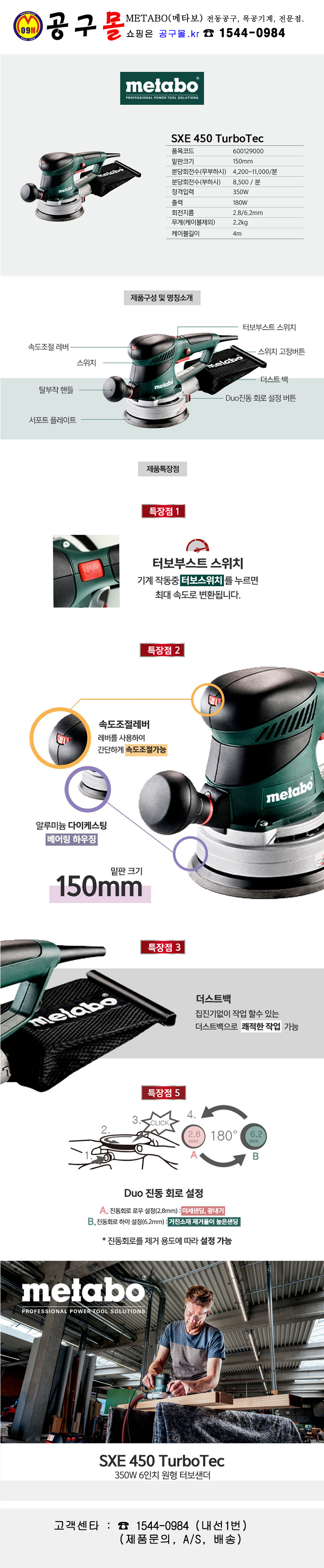 메타보 원형샌더 XE 450 TurboTec(6) 터보기능, METABO, 샌더기, 오비털샌더, 공구몰, 600129000
