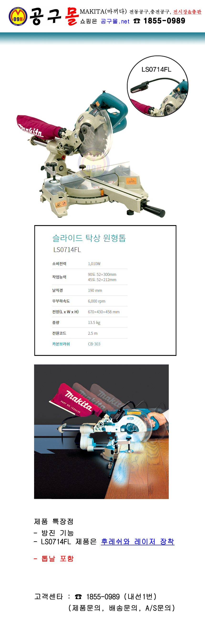 마끼다 슬라이드 원형톱 LS0714FL(톱날, 레이저포함) MAKITA, 각도절단톱,인테리어톱, 원형톱, 공구몰