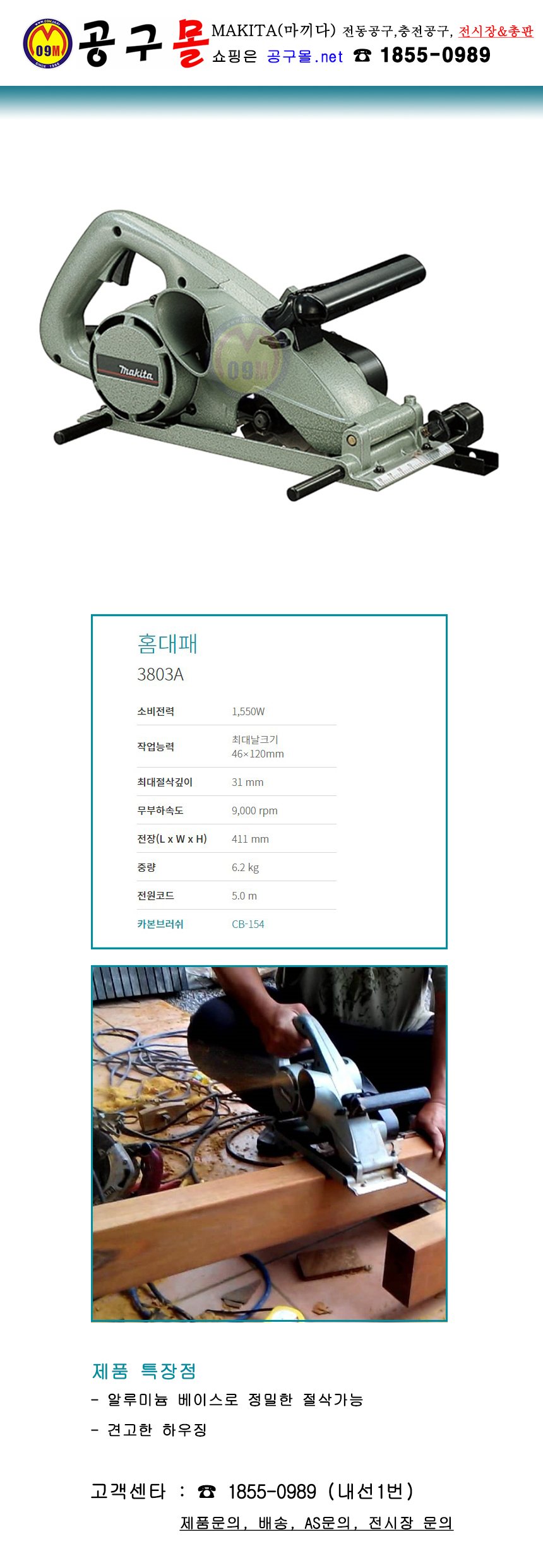 마끼다 홈대패 3803A 1,550W 목재가공 대패, MAKITA, 손대패, 대패, 평면대패, 공구몰