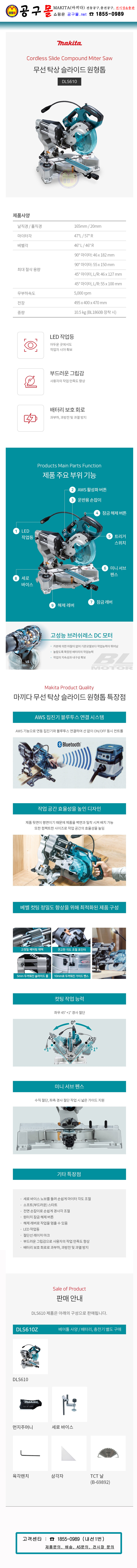 마끼다 18V 탁상원형톱 DLS610Z(베어툴) 165mm 날포함, MAKITA,각도절단기, 인테리어톱, 공구몰
