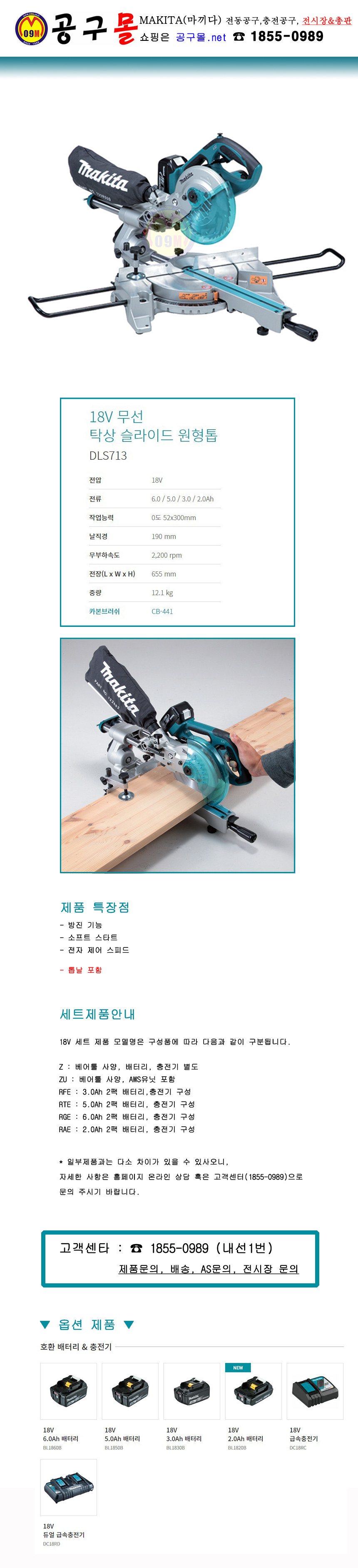 마끼다 18V 슬라이드 원형톱 DLS713Z(베어툴) 190mm 날포함, MAKITA,각도절단기, 인테리어톱, 공구몰