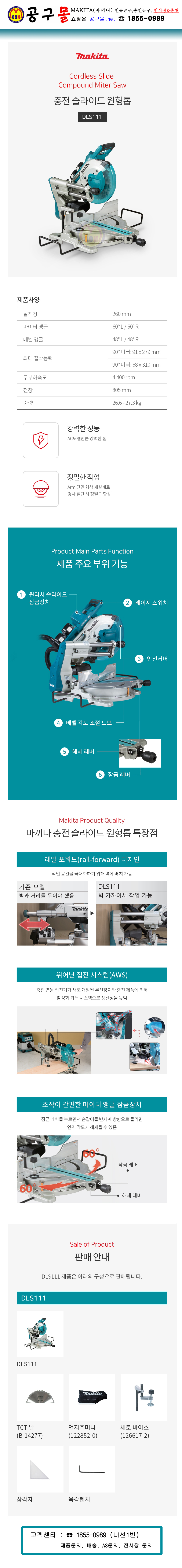 마끼다 18Vx2 슬라이드 원형톱 DLS111ZU (36V,베어툴) 260mm 날포함, MAKITA,각도절단기, 인테리어톱, 공구몰