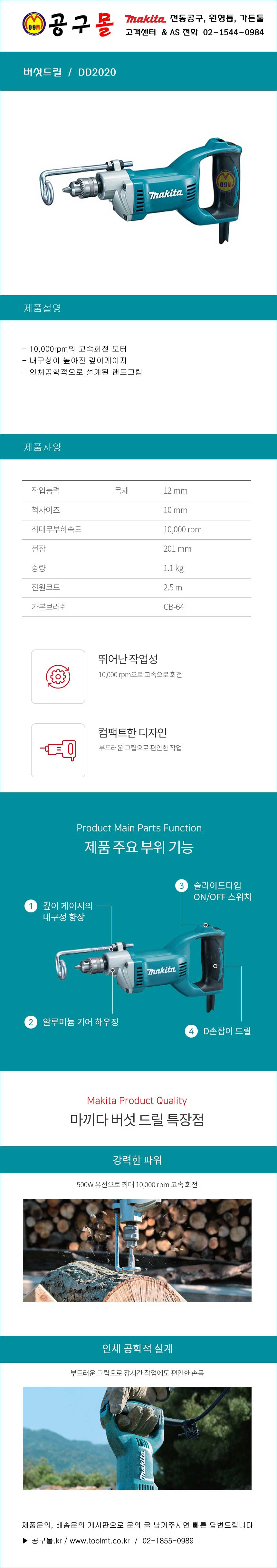 마끼다 버섯드릴 DD2020 MAKITA, 표고, 전기, 전동드릴, 울산 공구몰, 5144594