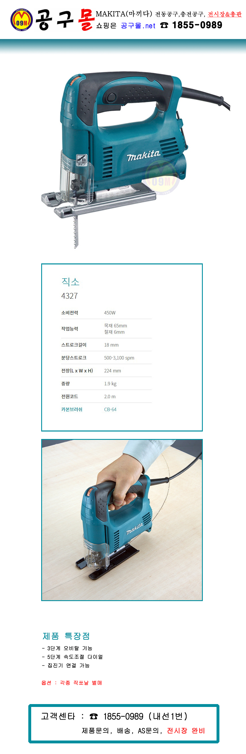 마끼다 직소(직쏘) 4327(450W) MAKITA, 지그쏘, 상하톱, 전기톱, 공구몰, 5110977
