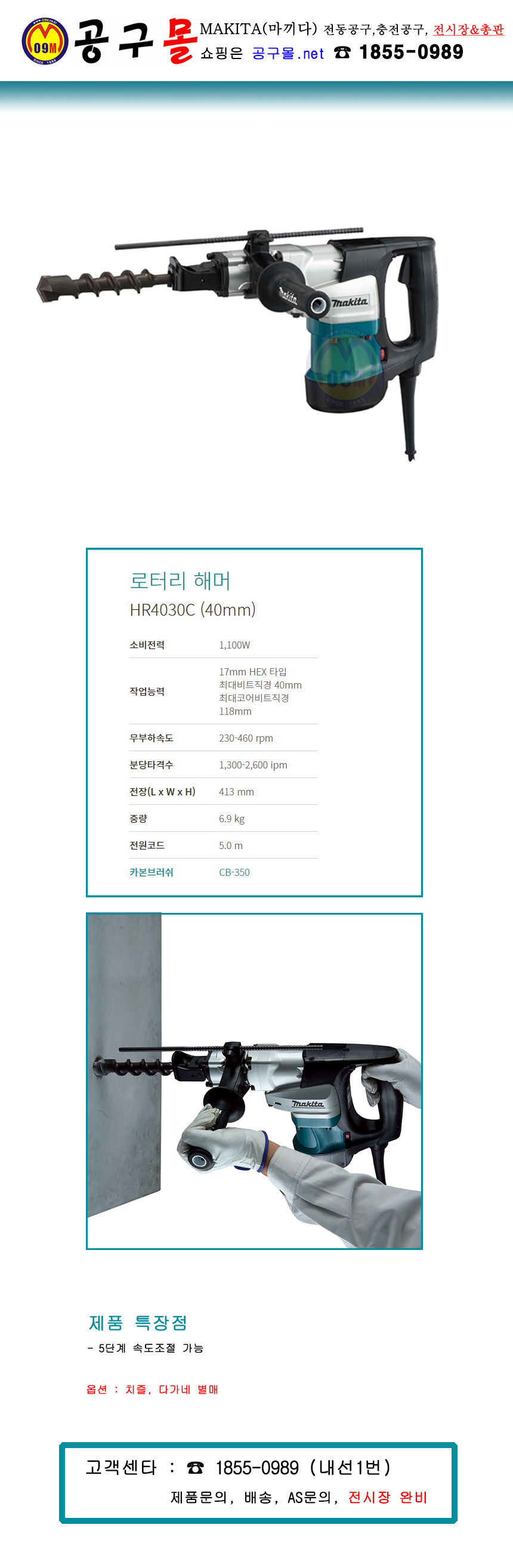 마끼다 함마드릴 HR4030C(6각타입) 1,100Wx40mm MAKITA/파괴함마/브레이커,5110773