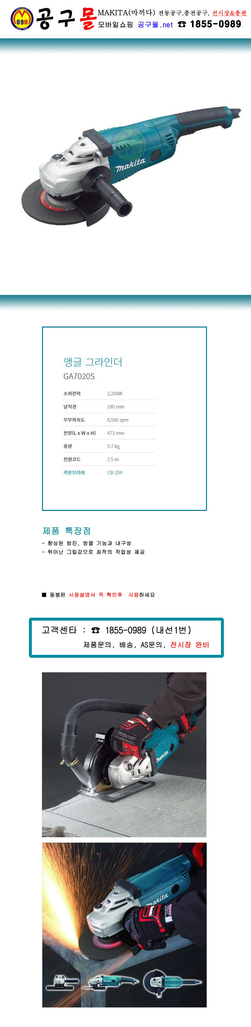 마끼다 앵글그라인더 GA7010C (180mm) 1,800W, MAKITA, 공구몰, 전기그라인더, 핸드그라인더, CB-204