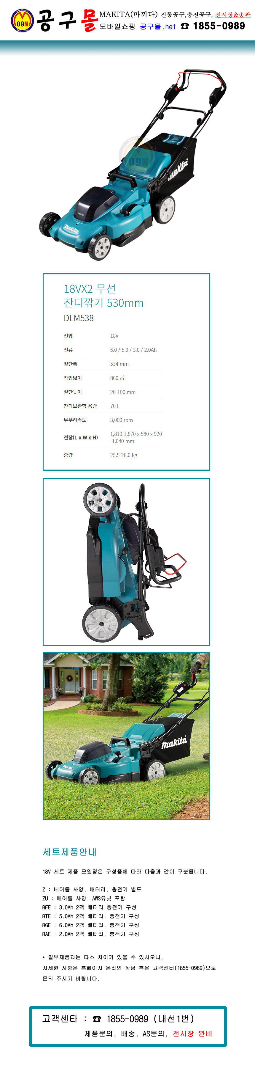 품절,마끼다 18Vx2 잔디깎기 DLM538Z (베어툴) 534mm, MAKITA, 충전잔디깍기, 잔디깍기, 제초기,공구몰  품절