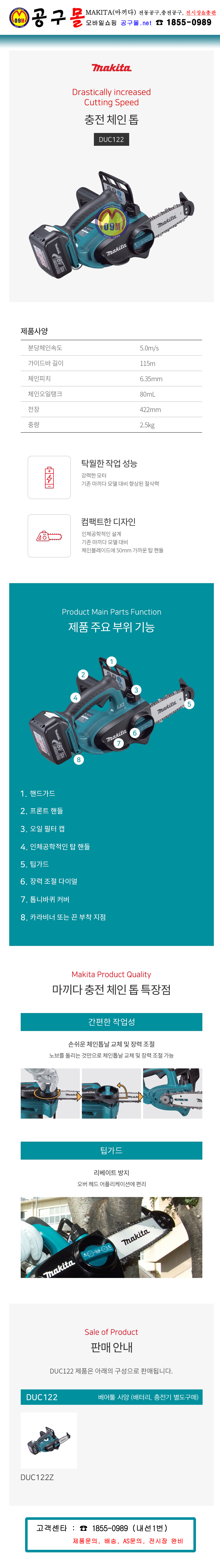 마끼다 18V 체인톱 DUC122Z (베어툴) 115mm, MAKITA, 충전체인톱, 체인톱, 무선톱, 충전톱, 공구몰