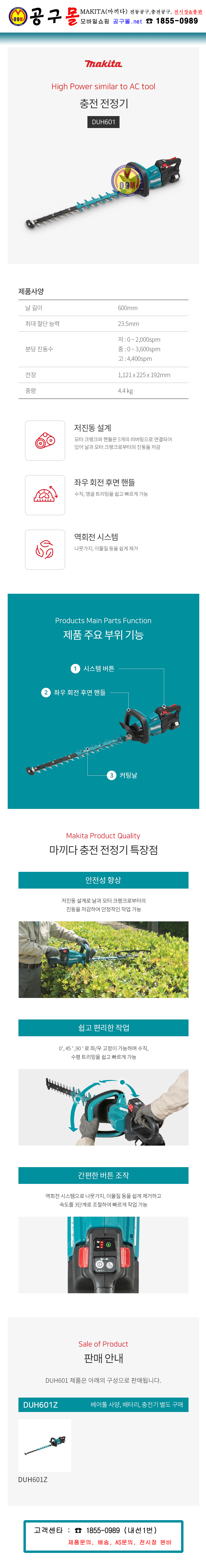 마끼다 18V 전정기 DUH601Z(베어툴) 600mm, MAKITA, 충전전정기, 무선전정기, 헤지트리머, 공구몰