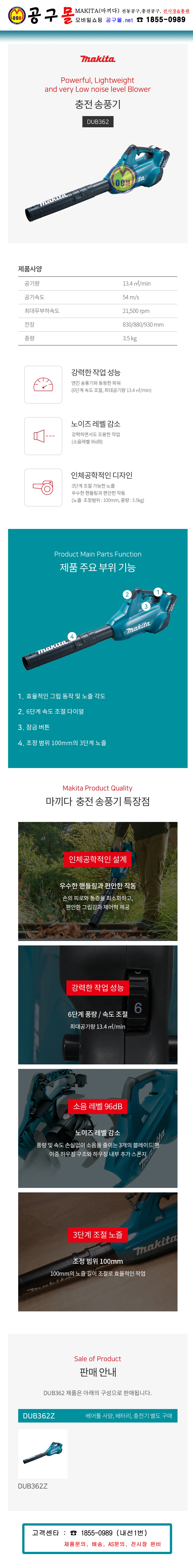 마끼다 18Vx2 무선송풍기 DUB361Z (베어툴) MAKITA, 충전송풍기, 송풍기, 낙엽청소기, 공구몰