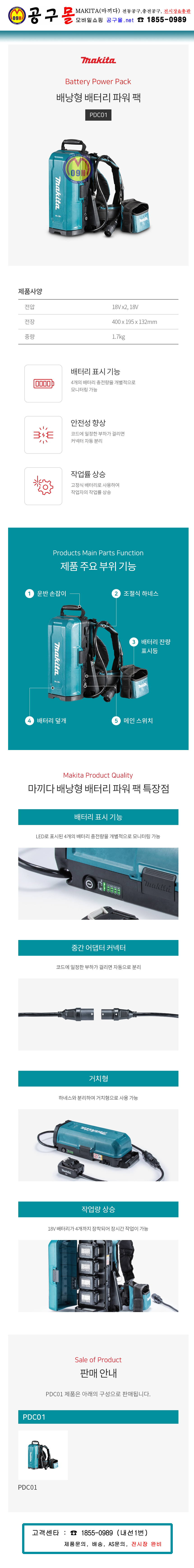마끼다 18Vx2 파워팩 배터리 191A63-4(PDC01) MAKITA, 어댑터 191J51-5/ 191N62-4/ 191J50-7, 공구몰