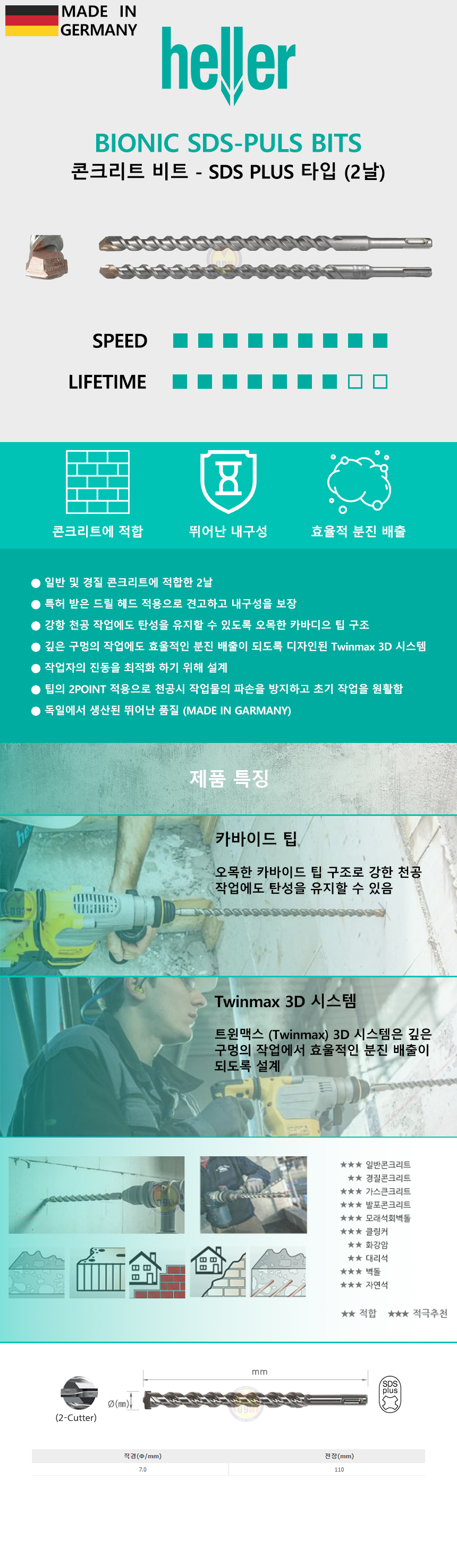 헬러 SDS-PLUS 콘크리트 비트 (7.0-110mm) 독일제 콘크리트날