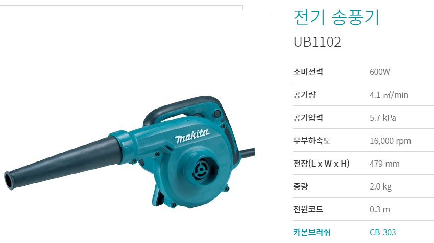 마끼다 전기송풍기 UB1102 - 600W, MAKITA, 유선송풍기, 송풍기, 청소기, 공구몰