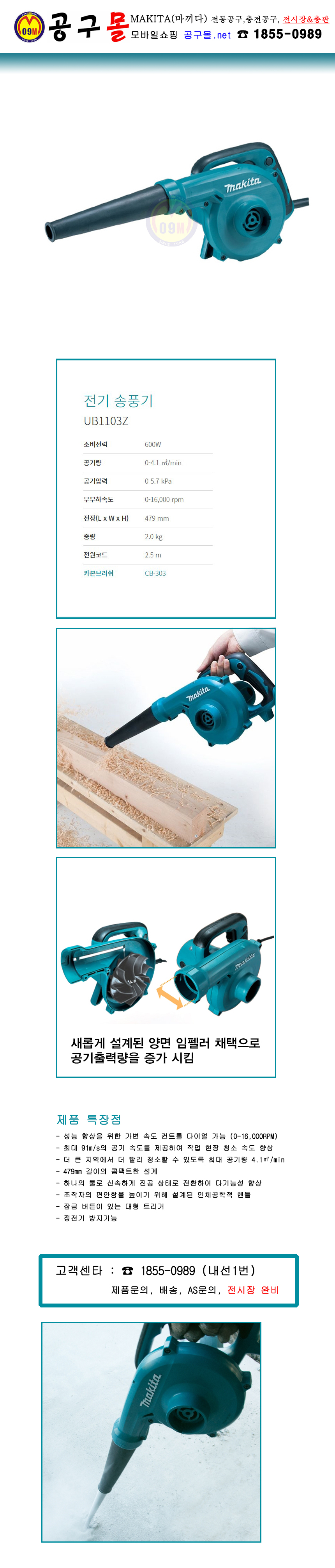 마끼다 전기송풍기 UB1103Z - 600W(풍량조절), MAKITA, 유선송풍기, 송풍기, 청소기, 공구몰
