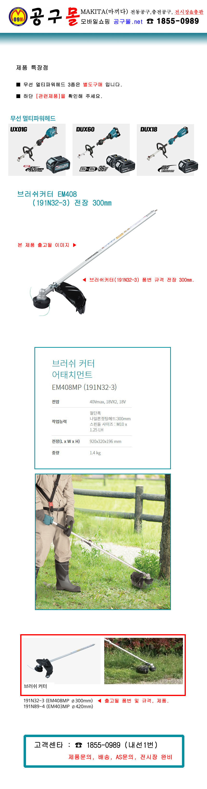 마끼다 브러쉬커터(멀티파워헤드용) 191N32-3 (300mm) EM408MP, MAKITA, UX01G, DUX60, DUX18, 모델사용, 공구몰