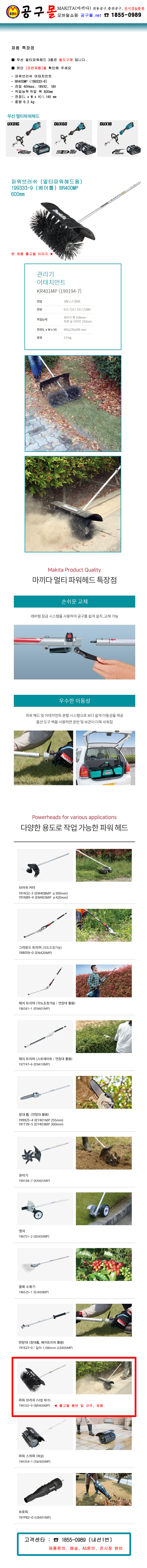 마끼다 파워브러쉬 (멀티파워헤드용) 199333-9 (베어툴) BR400MP 600mm, MAKITA, UX01G, DUX60, 모델사용, 공구몰
