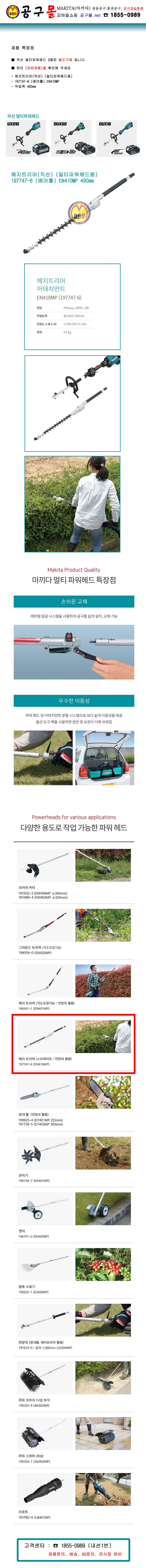 마끼다 헤지트리머 (멀티파워헤드용) 197747-6 (베어툴) 490mm, MAKITA, EN410MP, 직선작업, 공구몰