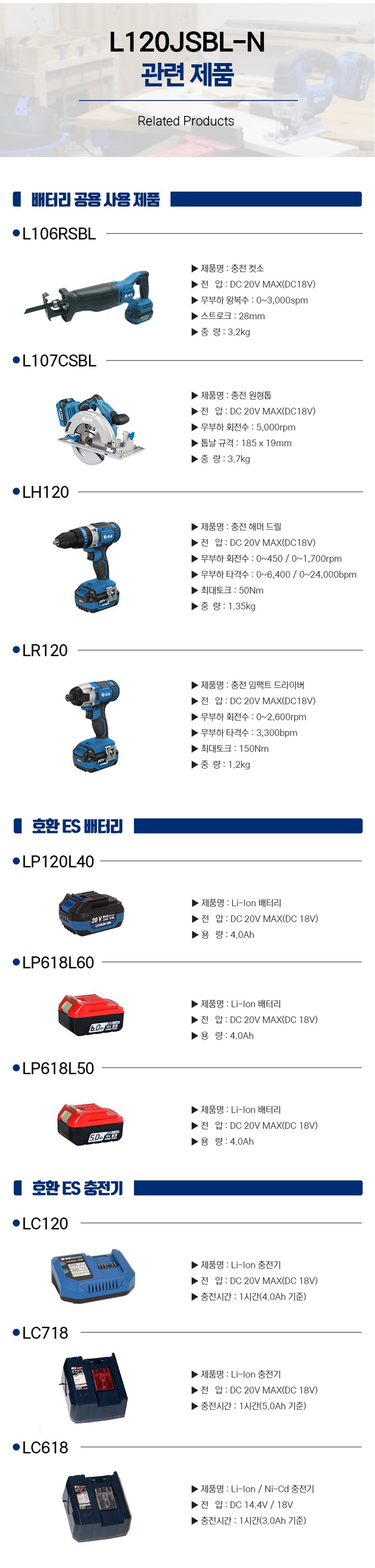 ES산업 20V 충전직쏘 L120JSBL-N (베어툴) 무선직쏘, 지그톱, 무선톱, 충전톱, 전기톱