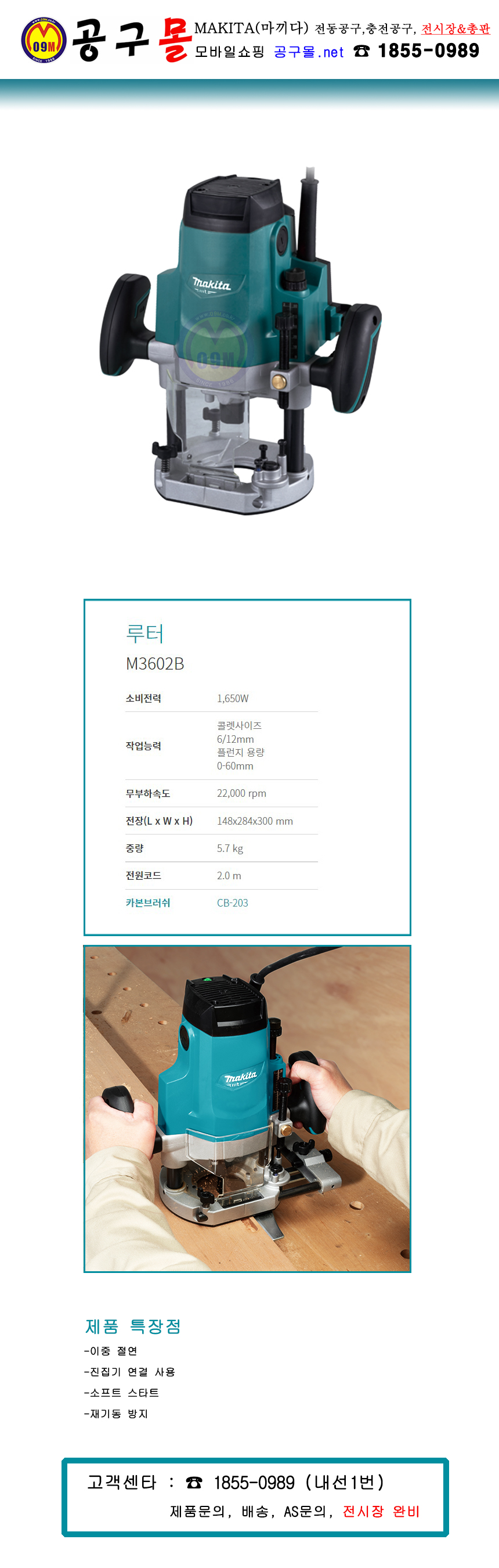 마끼다 루터 M3602B (콜렛 6/12mm) 1,650W MAKITA, 라우터, 트리머, 루타기, 공구몰