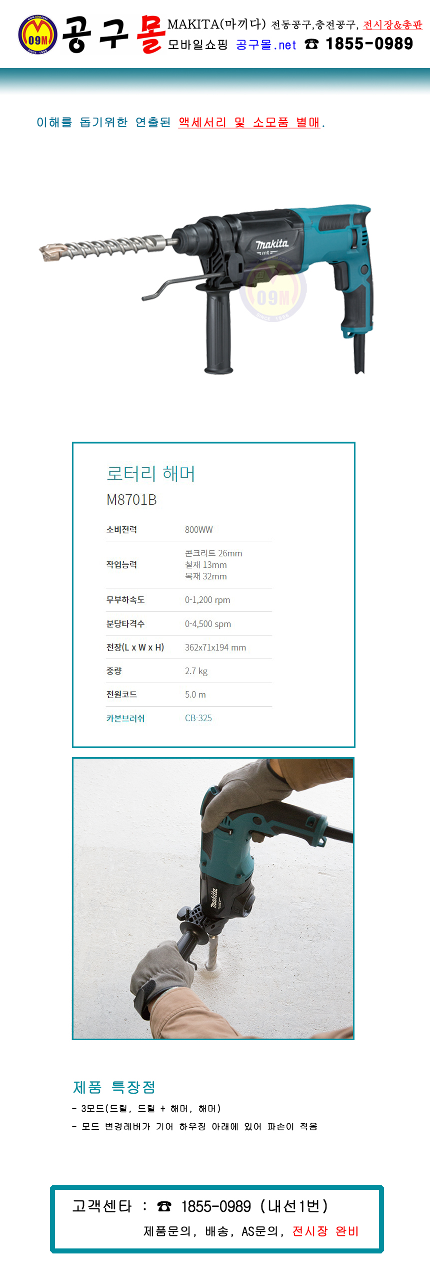 마끼다 SDS-로터리해머드릴 M8701B 800WW MAKITA, 해머드릴, 진동드릴, 전기해머드릴, 공구몰