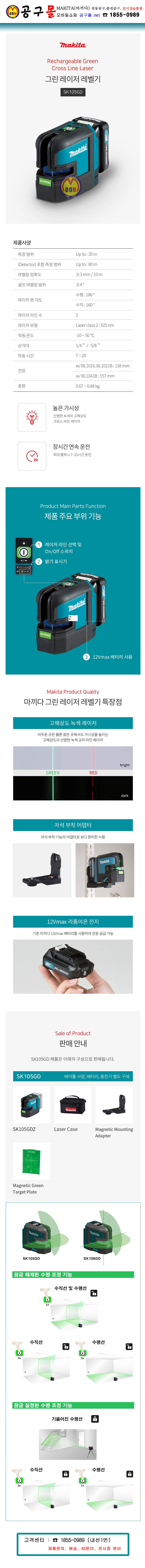 마끼다 12V 레이저레벨기(그린) SK105GDZ (베어툴) MAKITA, 그린레이저 레벨기, 그린레벨기, 수평기, 공구몰