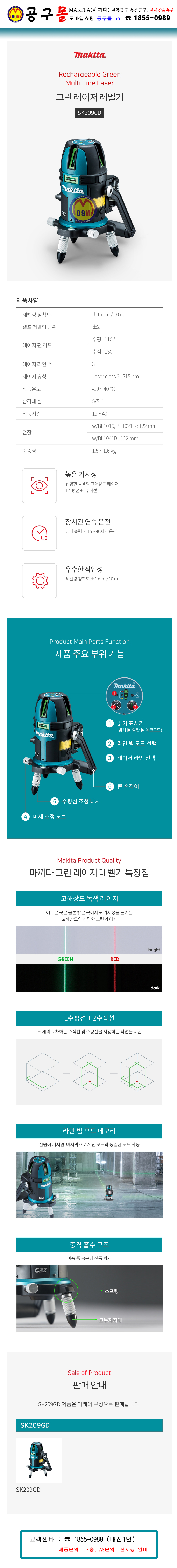 마끼다 12V 레이저레벨기(그린) SK209GDZ (베어툴) MAKITA, 그린레이저 레벨기, 그린레벨기, 수평기, 공구몰