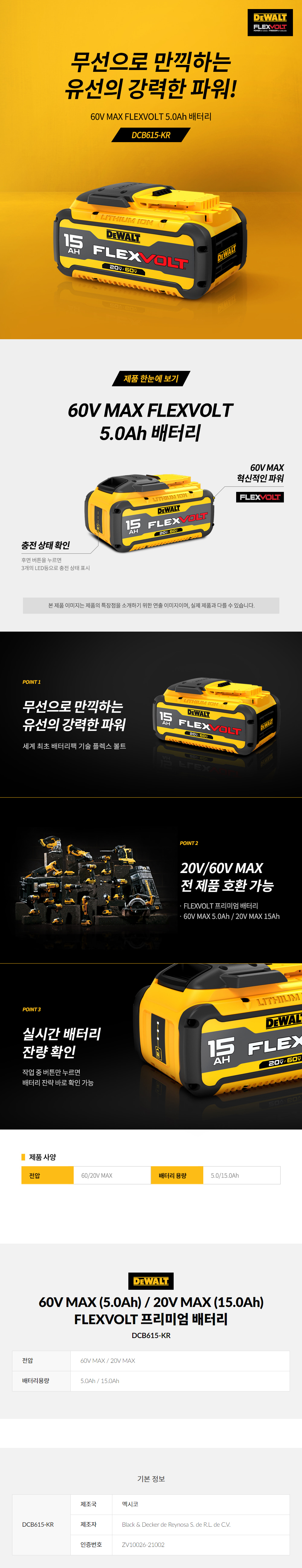 디월트 20V 60V 배터리 DCB615 (5AH-15AH) 고용량 밧터리 ,C575-0155