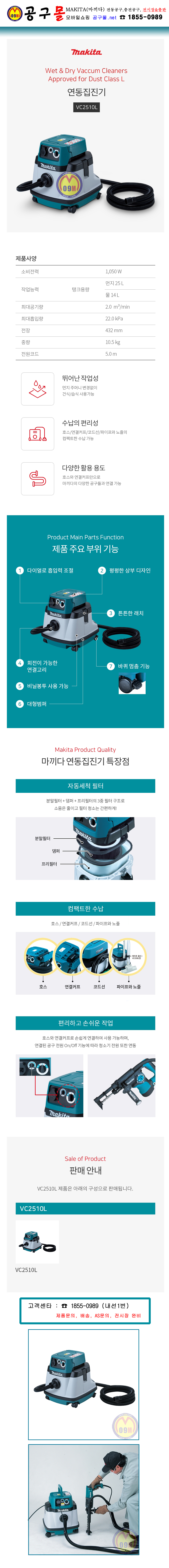 마끼다 건습식 연동집진기 VC2510L 1050W-220V MAKITA, 충전청소기, 가정용청소기, 업소용청소기