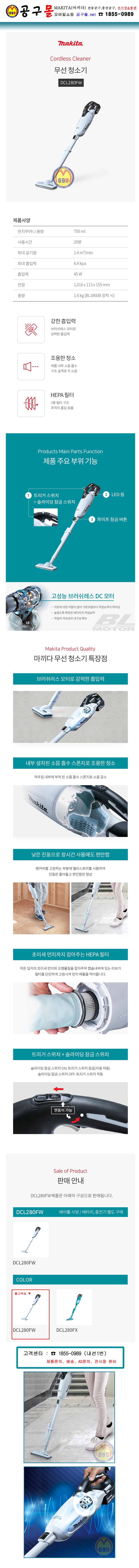 마끼다 18V 청소기 DCL281FZW (베어툴) (BL) MAKITA, 터치스위치, 먼지주머니, 공구몰