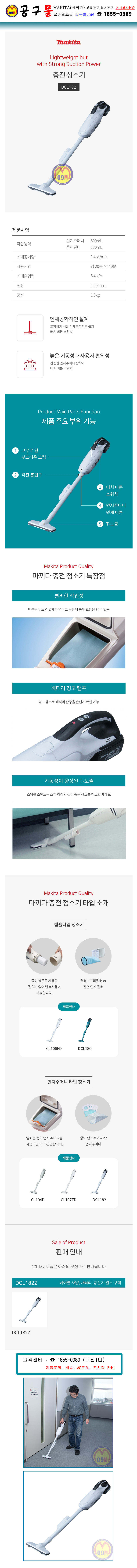 마끼다 18V 청소기 DCL182ZW (베어툴) MAKITA, 원터치스위치,먼지주머니, 종이필터 , 공구몰