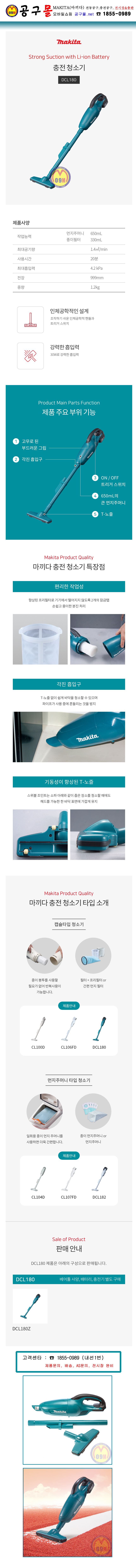 마끼다 18V 청소기 DCL182ZW (베어툴) MAKITA, 원터치스위치,먼지주머니, 종이필터 , 공구몰