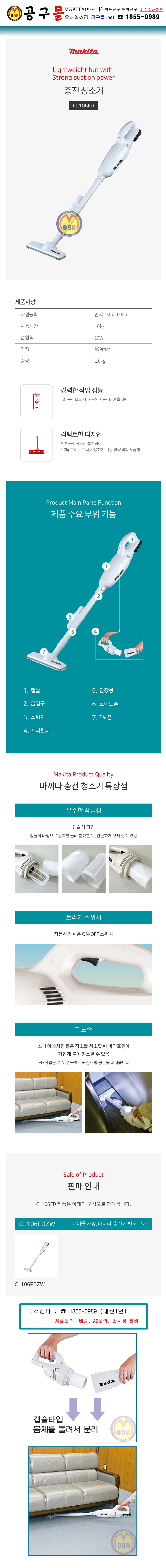 마끼다 12V 청소기 CL107FDZW (베어툴) MAKITA, 원터치 스위치, 종이 / 천 먼지주머니, 공구몰