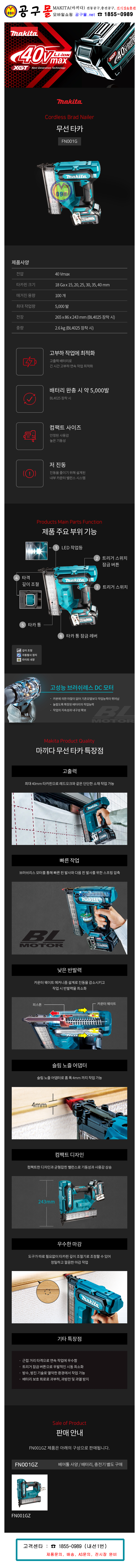 마끼다-40Vmax 40V 충전타카 FN001GZ02 (베어툴) (일자핀15-40mm) MAKITA, 공구몰, F30, 일자타카, 타카