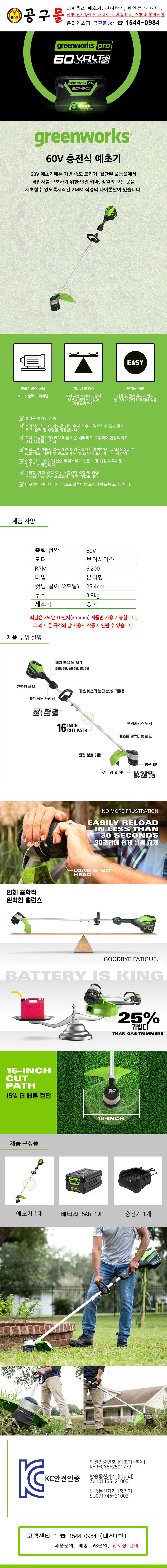 그린웍스 60V 773 예초기 (5Ah1개 세트) 공구몰, 제초기, 벌초기, 60V-YC51