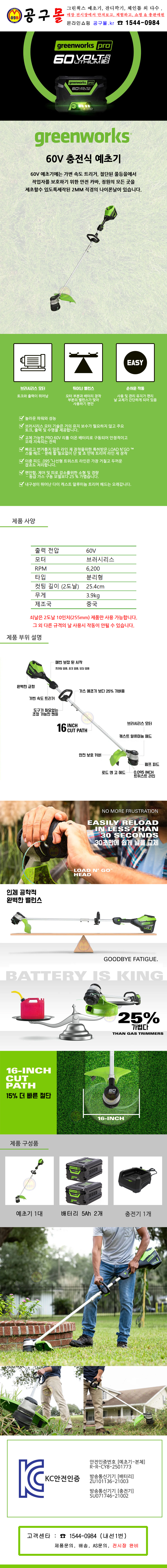 그린웍스 60V 773 예초기 (5Ah2개 세트) 공구몰, 제초기, 벌초기