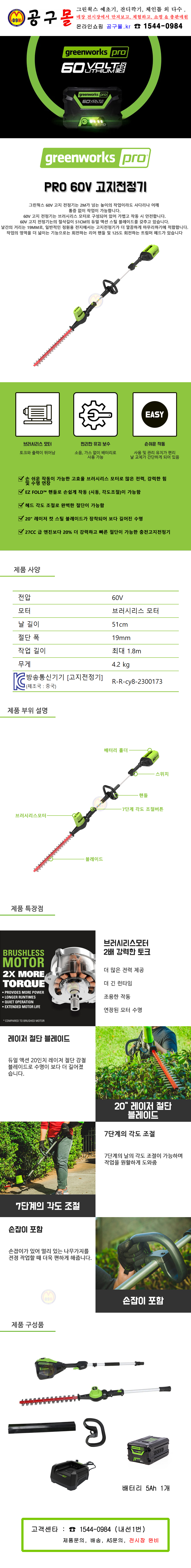 그린웍스 60V 173 고지전정기 (5Ah2개 세트) 충전고지전정기 전정기 트리머 고지트리머