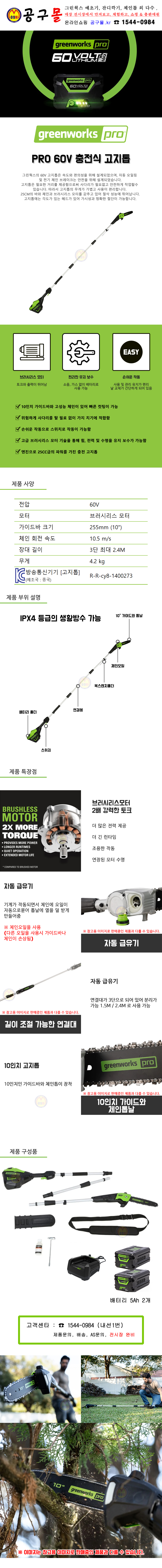 그린웍스 60V 273 고지톱(5Ah2개 세트) 충전, 무선, 장대톱