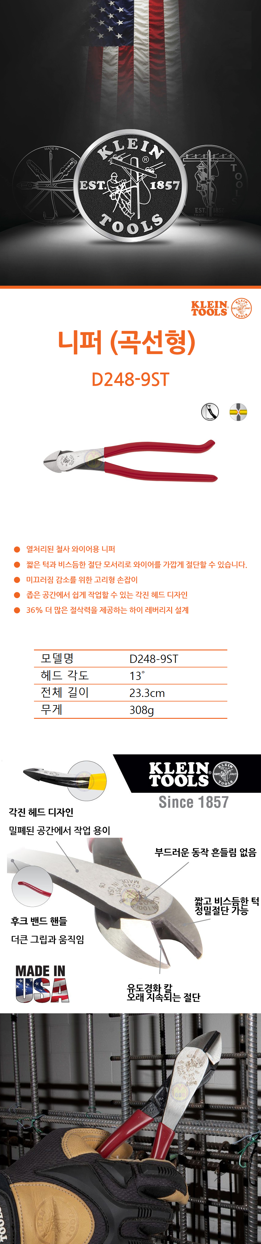클라인툴스 니퍼 (곡선형) D248-9ST, KLEIN, 곡선니퍼 뺀치 플라이어