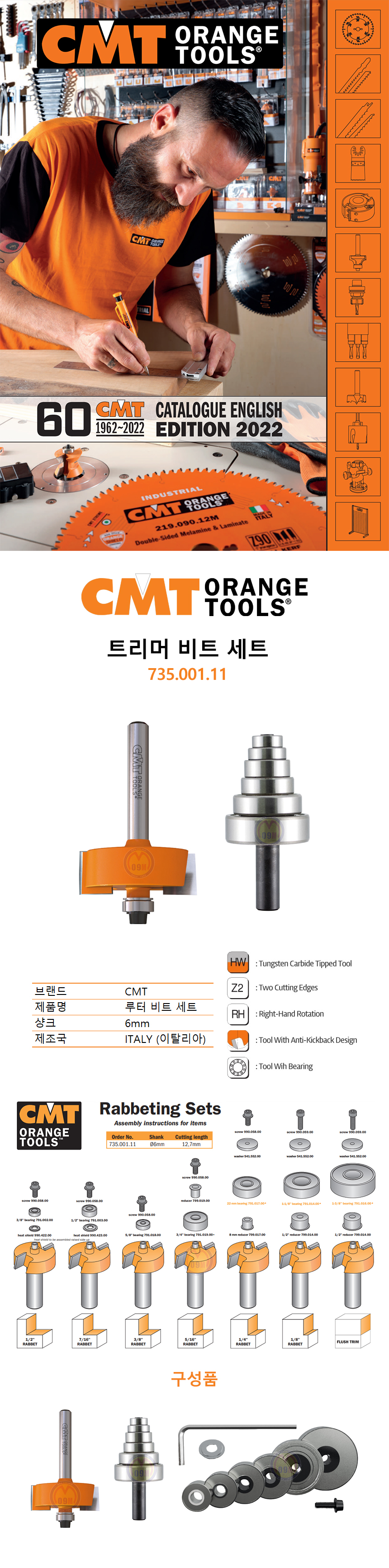 CMT 트리머날 세트 735.001.11 (깊이 조절형) 루터비트세트 샹크6MM