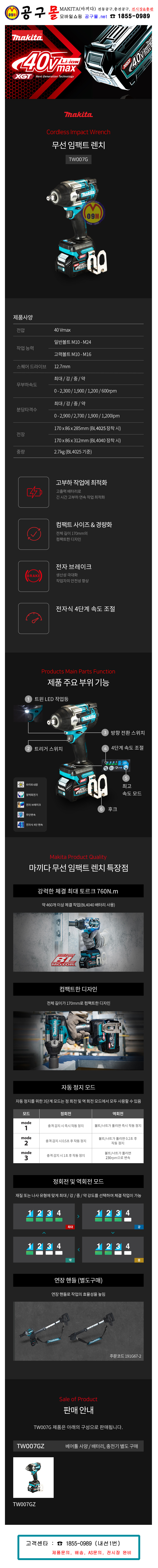 마끼다 40V 임팩트렌치1/2 TW007GZ (베어툴) (BL,미드토크,M24) MAKITA, 공구몰, 소켓렌치, 충전렌치, 임팩렌치