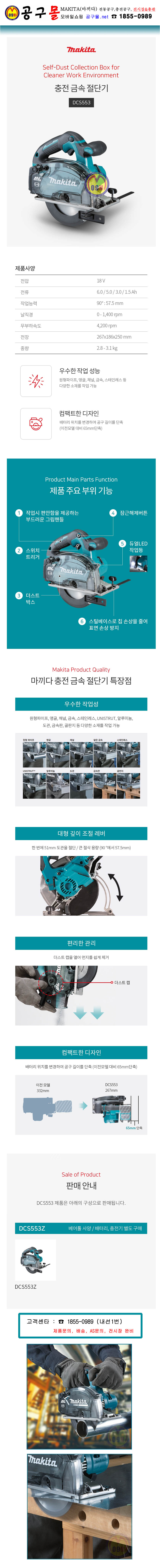 마끼다 18V 금속절단기 DCS553Z (베어툴) 150mm (BL) MAKITA, 공구몰, 앵글절단기, 파이프절단기.