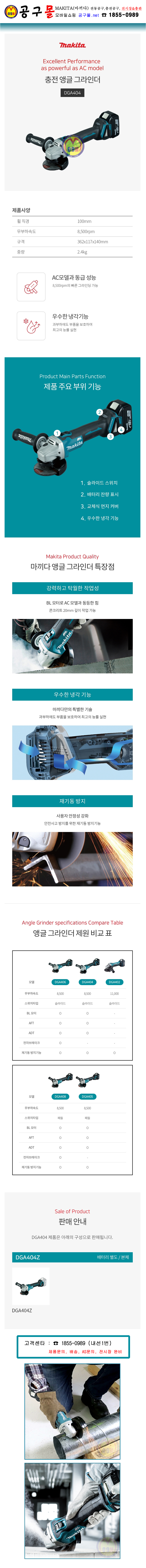 마끼다 18V 그라인더(4) DGA404Z (베어툴) (BL, 슬라이드 스위치) MAKITA, 공구몰, 충전그라인더, 핸드그라인더, 앵글그라인더