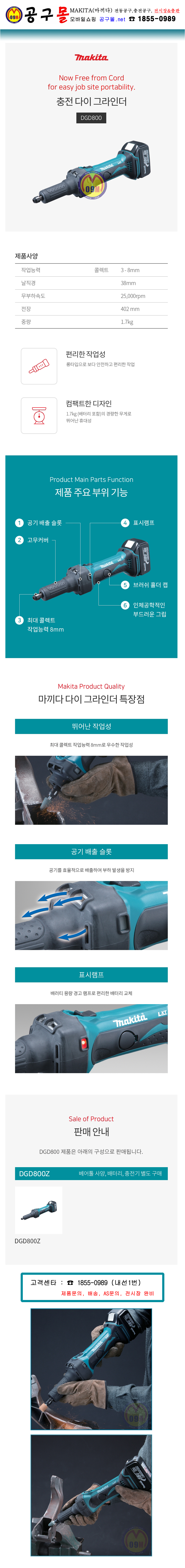 마끼다 18V 다이그라인더 DGD800Z (베어툴) 콜렛3-8mm, MAKITA, 공구몰, 충전그라인더, 핸드그라인더, 그라인더