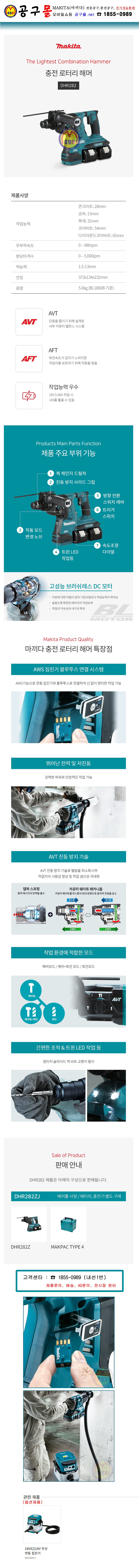 마끼다 18V SDS 로터리해머 DHR182ZU (베어툴) 18mm (BL / AWS 유닛 포함) MAKITA, 공구몰, 충전해머드릴, 충전함마드릴