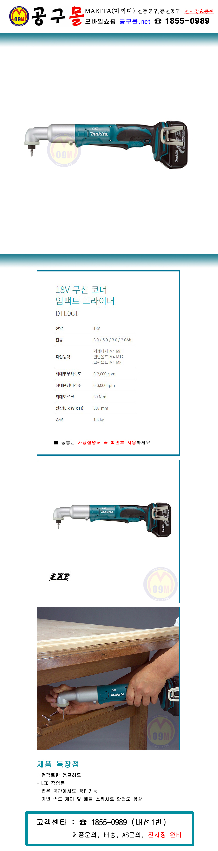 마끼다 18V 임팩 코너드라이버 DTL061Z (베어툴) (BL) MAKITA, 충전임팩드라이버, 충전드라이버, 공구몰