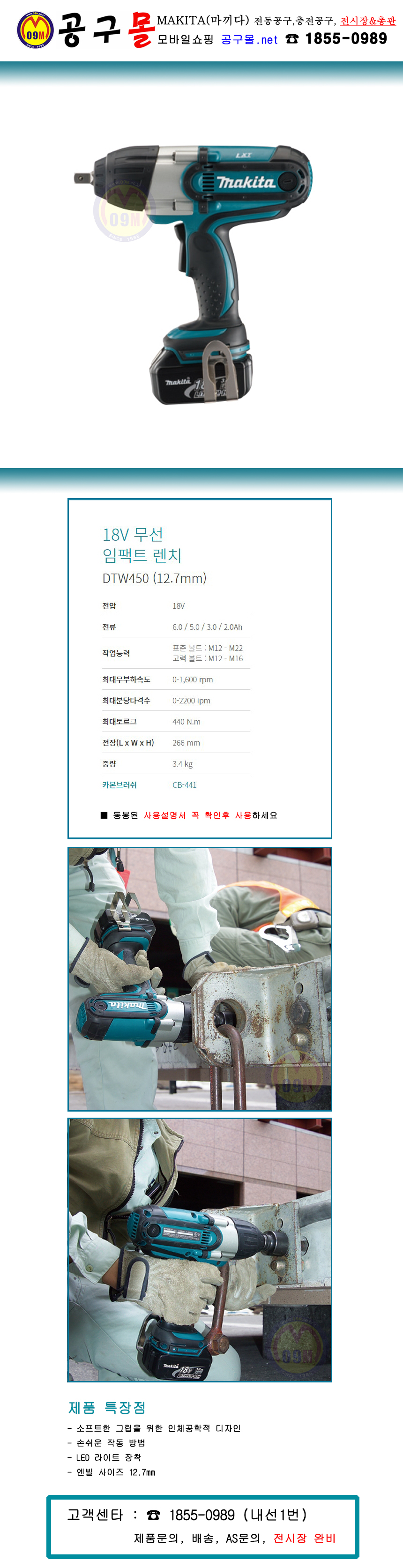 마끼다 18V 임팩트렌치1/2 DTW450Z (베어툴) 440N.m MAKITA, 충전임팩 충전렌치 소켓렌치, 공구몰