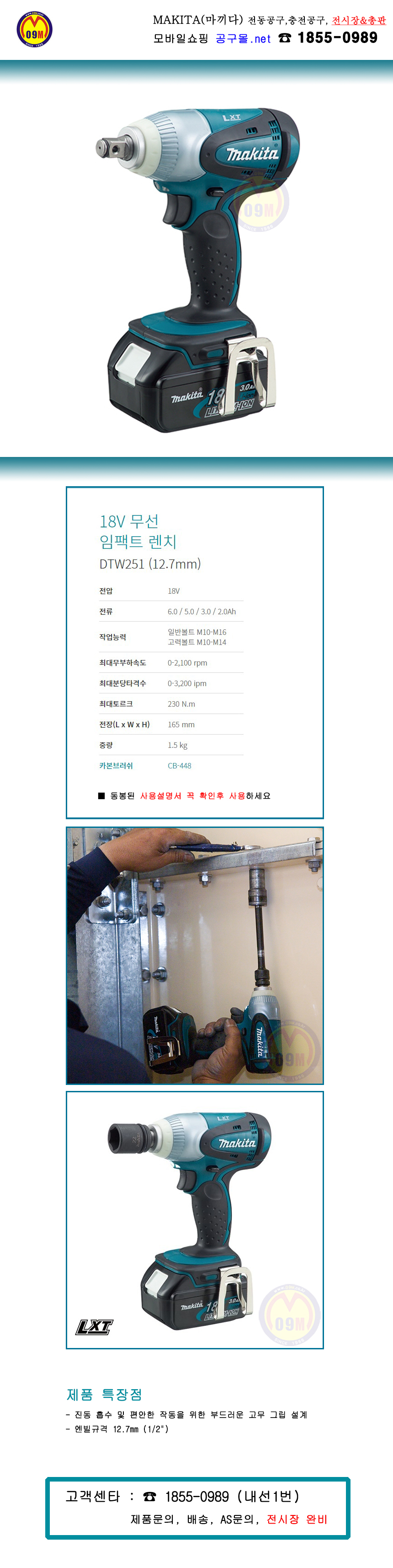 마끼다 18V 임팩트렌치1/2 DTW251Z (베어툴) 230N.m MAKITA, 충전임팩 충전렌치 소켓렌치, 공구몰