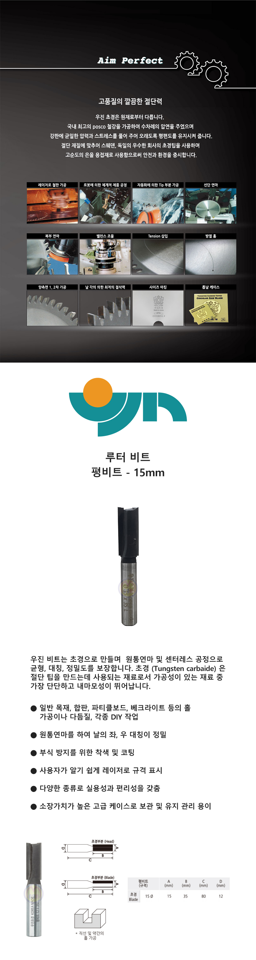 우진초경 평루터비트 15mm 루터날 루타날 평비트