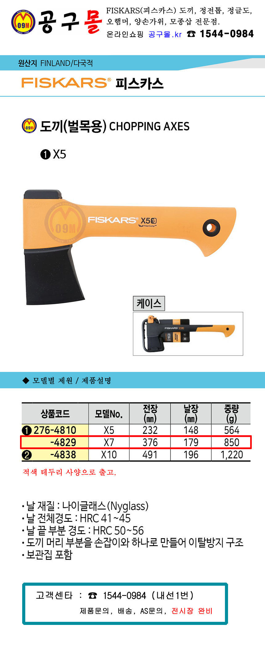 피스카스 도끼(벌목용) X7 376mmx850g FISKARS, 공구몰, 캠핑도끼, 화목도끼, 장작패기, 276-4829